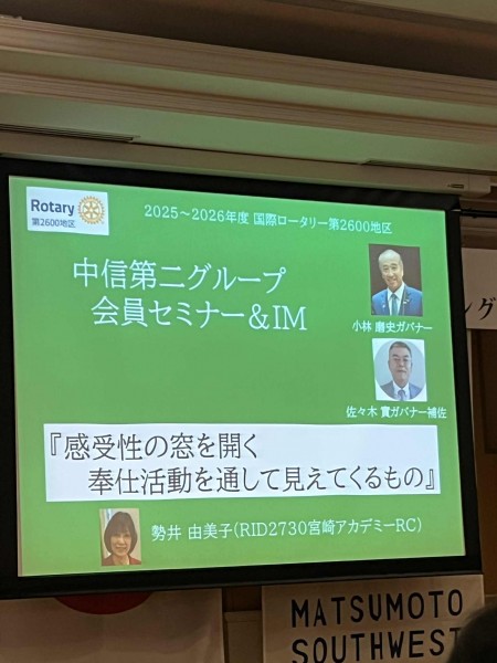 今回は、10月4日(土)ホテルモンターニュ松本で開催された 2025~2026年国際度国際ロータリー第2600地区 中信第二グループの会員セミナー&IM(インターシティーミーティング)のご報告をします。