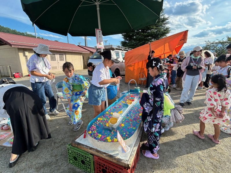 しかも、保護者にテキ屋さんが居たので、スーパーボールやかき氷、焼きそば、射的の屋台を出してくれることになり、ポップコーンやわたあめは社協から機械をレンタル、地元の消防団で消火器の的当て、ヨーヨー釣りのプールは明科カヌークラブからパックラフト(ボート)を借りるなど、